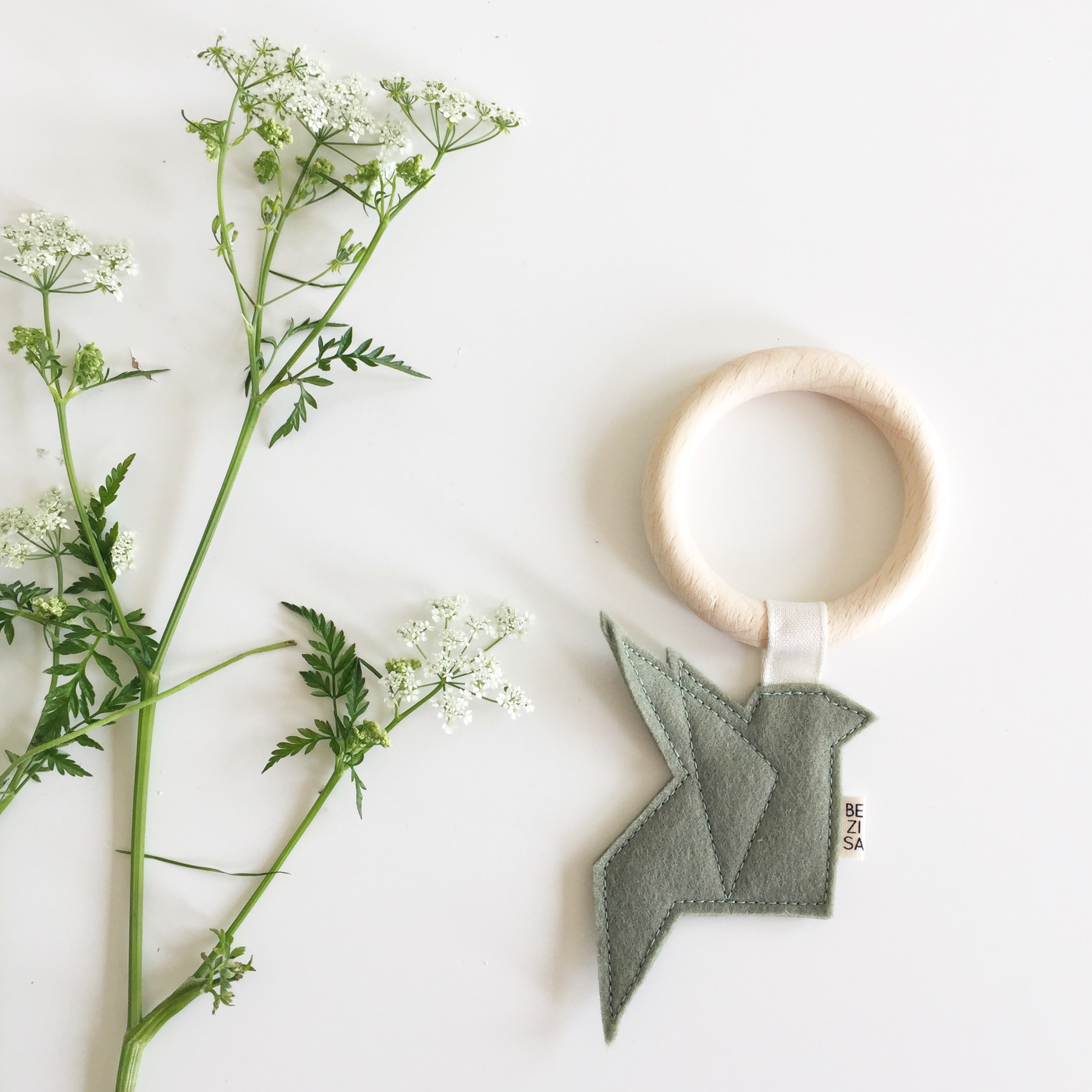 De bijtring is gemaakt van een houten ring en een figuurtje van ecologisch wolvilt. De houten ring heeft een doorsnee van  ongeveer 7 cm. Het wolvilt is gekleurd met natuurlijke materialen. Veilig bijten en kwijlen dus. Tips voor langer behoud van de kwaliteit zie de veiligheidsvoorschriften.