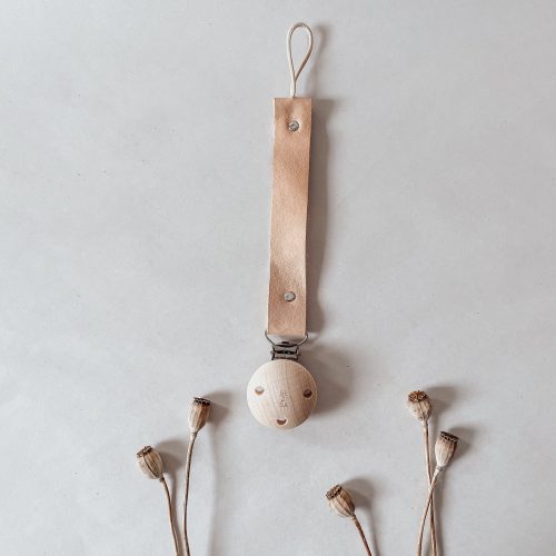 Handig speenkoord gemaakt van beukenhout met en stoer karakter. Een houten gegraveerde clip aan het ene uiteinde en katoenen wax koord aan het andere uiteinde. Geschikt voor een speen met een ring.