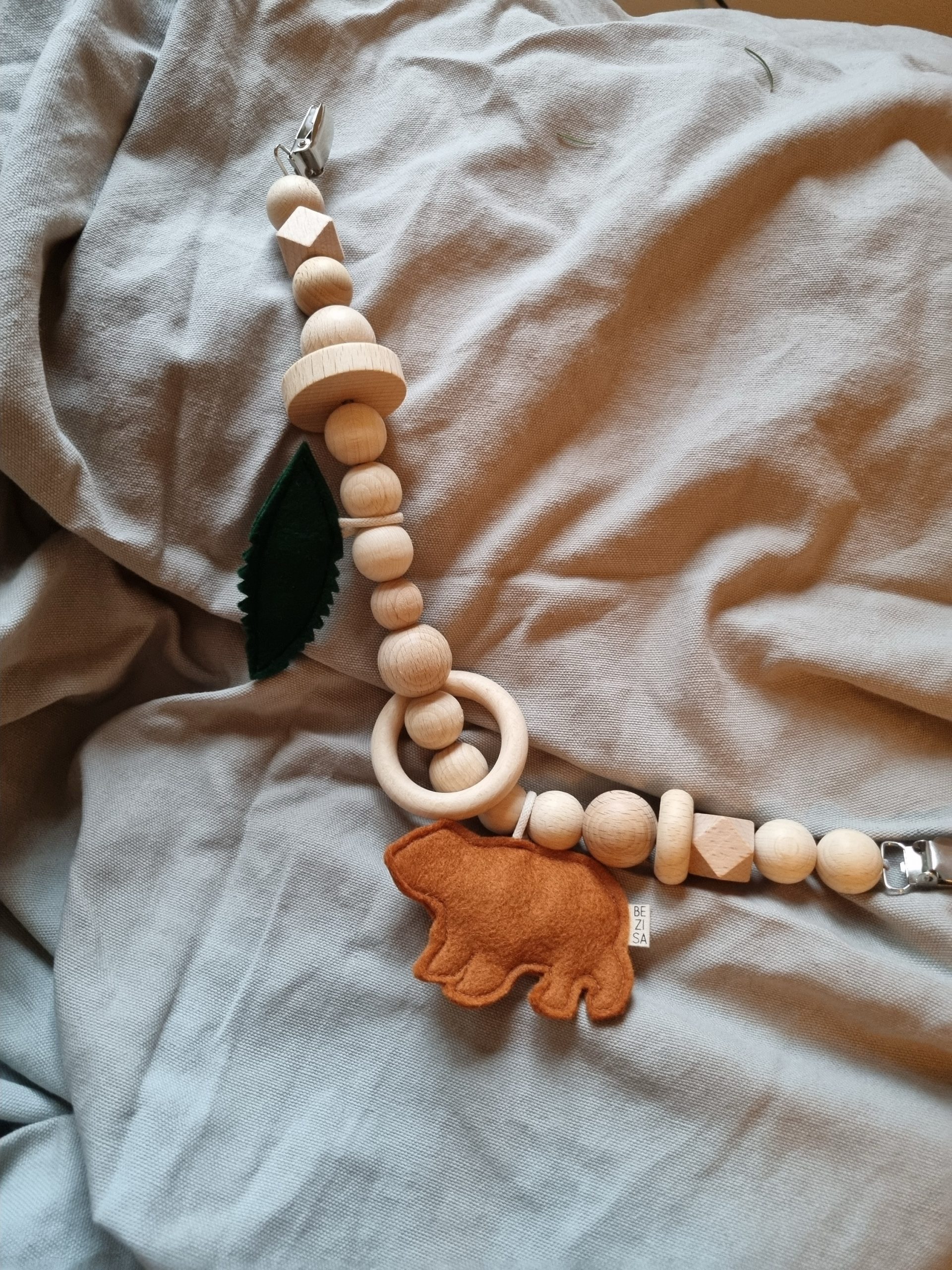 Wagenspanner uit de fijne bos collectie van “Walk througt the forest” neemt je kleintje mee op pad in de rust van het bos, geniet van het serene hout op hout geluid van de rammelende ring.